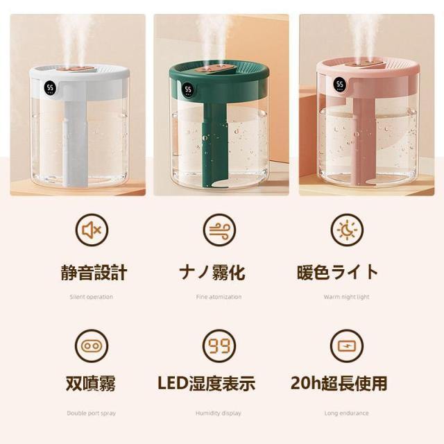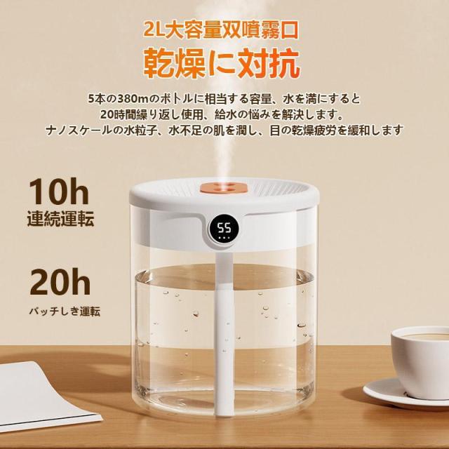 加湿器 卓上 小型 空気清浄機 2L大容量 車用加湿器 秋冬乾燥対応 静音 オフィス 部屋 家庭用 花粉症対策 車載 省エネ 除菌 加湿機 センサ
