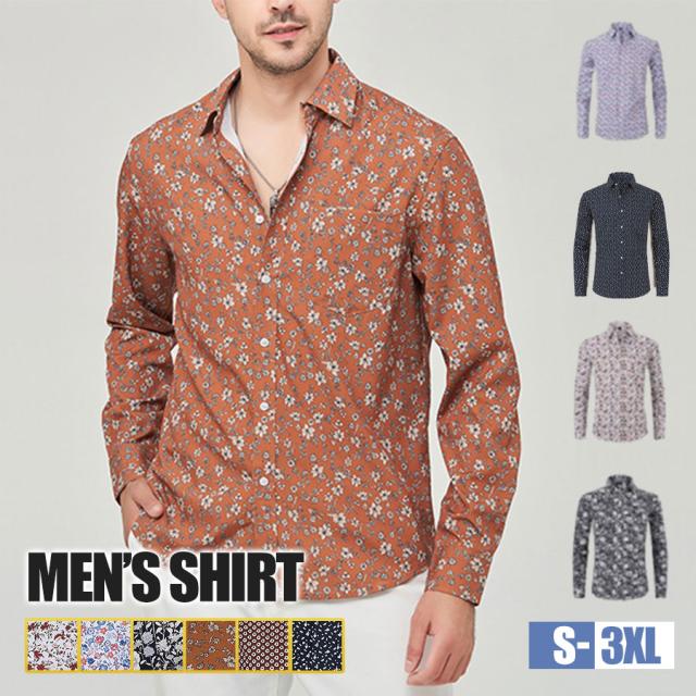 カジュアルシャツ シャツ メンズ 長袖シャツ 花柄 トップス 日除け 日除け対策 オフィス 紳士 重ね着 通勤 通学 秋 冬 春
