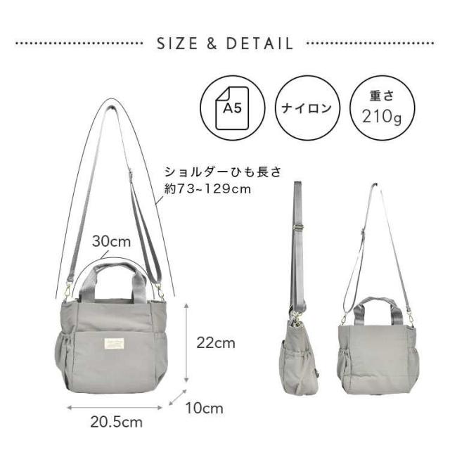 【洗えるナイロン fuwari 2WAY A5トートバッグ】