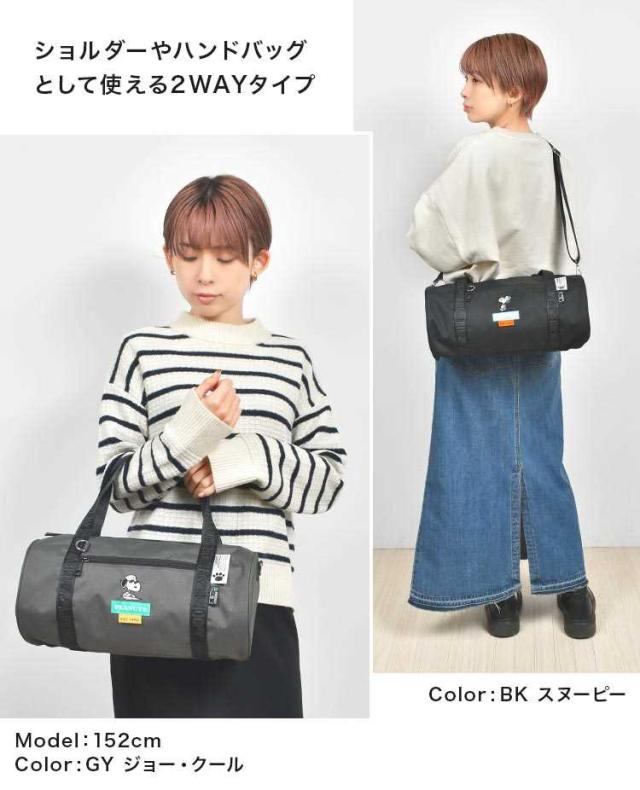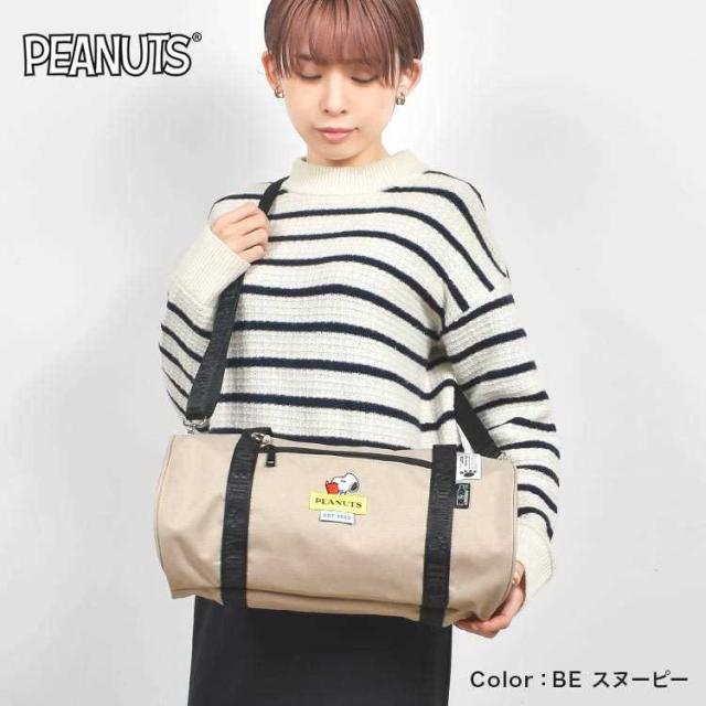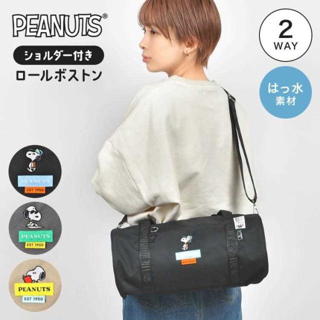 ボストンバッグ スヌーピー 大容量 撥水 レディース ショルダー 肩掛け 2way 旅行 小さめ 軽い トラベルバッグ おしゃれ かわいい シンプル キャラクター SNOOPY 高校生 中学生 小学生 大人 子供 女性 黒 ブラック グレー ベージュ ロールボストン 通勤 通学 修学旅行 防災