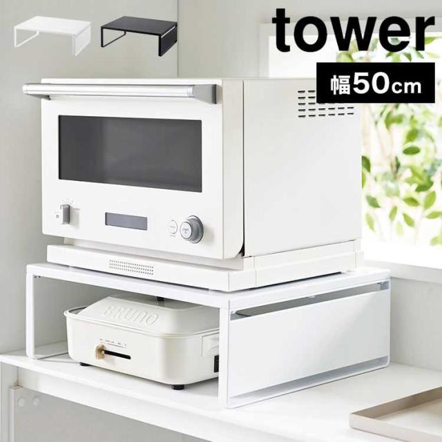 オーブンレンジラック 山崎実業 タワー tower レンジ下 収納 レンジ台 キッチン レンジラック キッチンラック オーブンラック 台 棚 トースターラック おしゃれ シンプル スタイリッシュ ホワイト ブラック 1442 1443 スペース 有効活用 電子レンジ台 炊飯器ラック 幅50cm