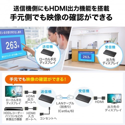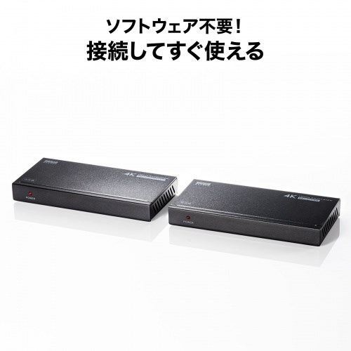 LANケーブル1本で4K/60Hz解像度のHDMI信号を最大120m延長することができ、受信機側にACアダプタが不要なPoC(PowerOverCable)で延長ができるHDMIエクステンダー。