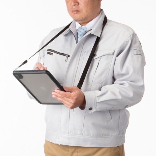 ●付属のストラップ(73〜126cm)を取り付けることで、立ったままでも安定した操作が可能です。ケースの角にストラップホールが付いているので、縦・横どちらの向きでも使用できます。