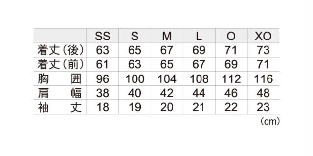 ゴーセン ユニセックス ウェア サイズ表