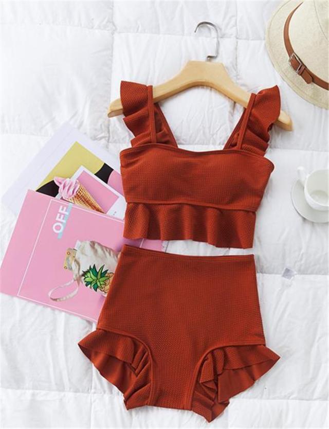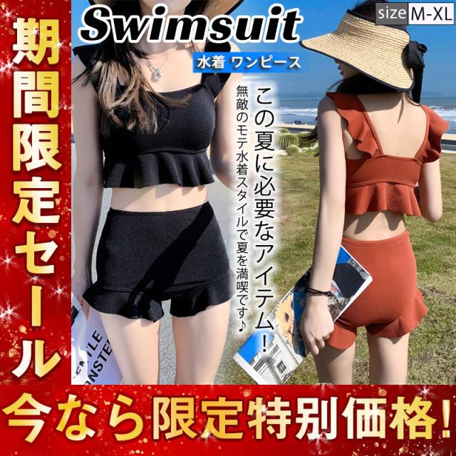 水着 レディース 2点セット 水着セット フレア フリル セクシー ビキニ ビスチェ風 ハイウエスト 女性用 夏 海 ビーチ お
