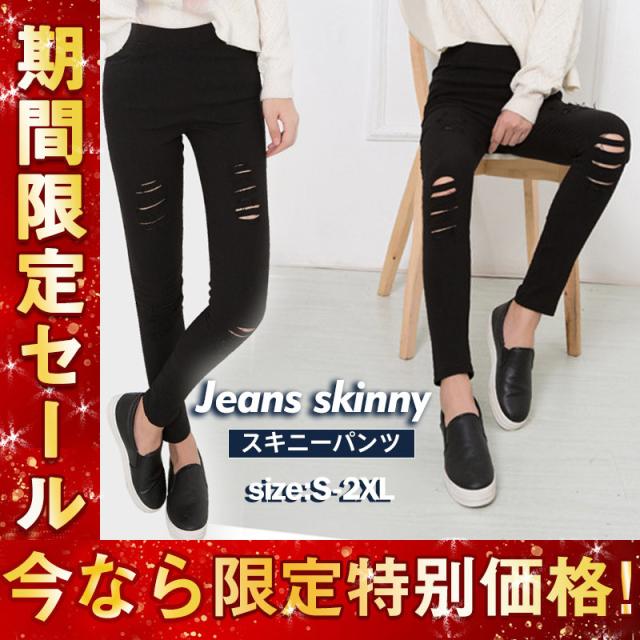 スキニーパンツ レディース ダメージ レギンス 超伸縮 美脚 ストレッチ スキニー ウエストゴム ヨガパンツ 美脚 ボトムス 秋