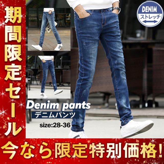 ジーパン デニムパンツ メンズ スキニーパンツ ロングパンツ ジーンズ 長ズボン ス細身 美脚 ウォッシュ ブリーチ ダメージ加工