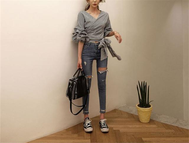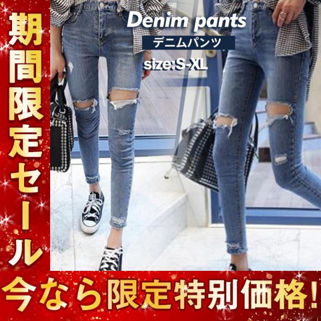 送料無料 デニムパンツ レディース スキニーパンツ ダメージ ストレッチ ハイウエスト スキニー ジーンズ パンツ ボトムス ファ