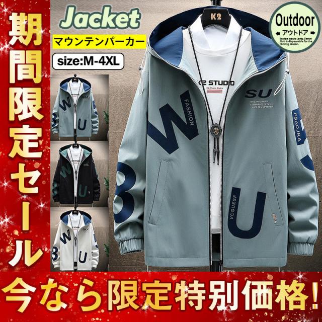 マウンテンパーカー メンズ ロング丈ジャケット ブルゾン フード付き パーカ ウインドブレーカー ジャンパー 秋 アウター アウト