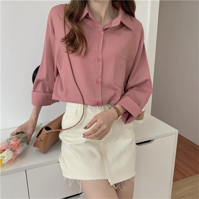 ブラウス レディース シャツ 七分袖 トップス ロング丈 体型カバー ゆったり カジュアル 無地 普段着 通勤 フォーマル 大きい