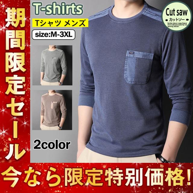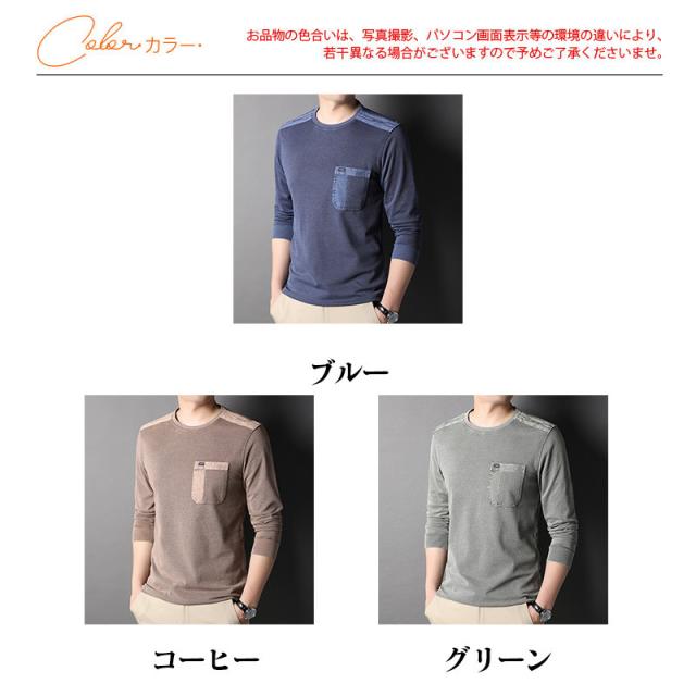 カットソー 長袖 メンズ Tシャツ トップス プルオーバー ロンt クルーネック Vネック トレーナー スウェット 胸ポケット デニム ストレッチ 速乾 uvカット スポーツ 綿100% コットン ビッグシルエット 部屋着 お兄系 春服 秋服 大きいサイズ 父の日 敬老の日 ルームウェア 春夏 新作 夏服 春服 春 夏 服 春新作 春 新作 無地 シンプル 細身 スリム