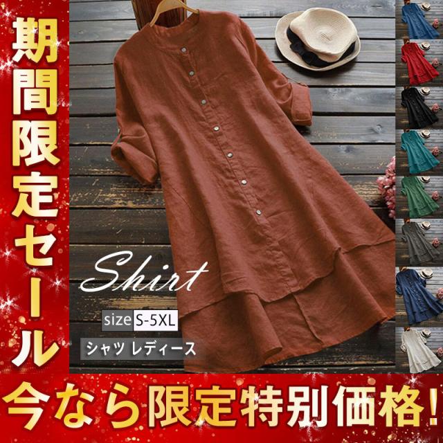 ワンピース シャツワンピース レディース チュニック ロング丈 リネン 綿麻 長袖 大きいサイズ オーバーサイズ 秋 体型カバー