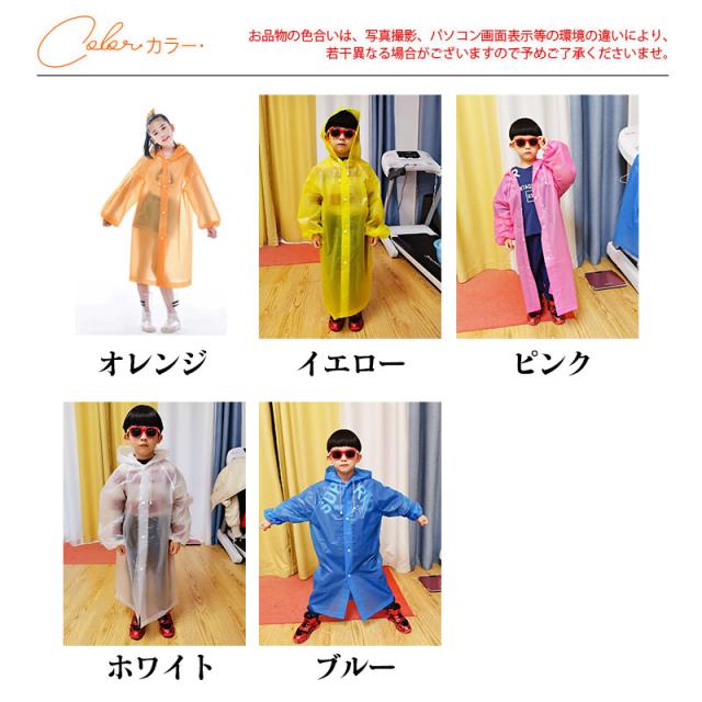 レインコート キッズ レインウェア ポンチョ カッパ 男の子 女の子 ランドセル対応 透明 ボタン 小学生 厚手 通学 自転車 梅