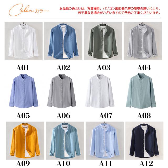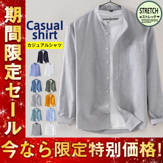 カジュアルシャツ メンズ シャツ 長袖 白シャツ ワークシャツ 長袖シャツ バンドカラーシャツ 春秋 通勤 開襟シャツ アウター