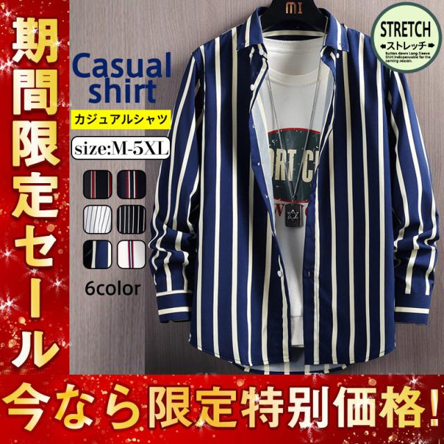 ストライプシャツ メンズ カジュアルシャツ シャツ 長袖 ボダンダウンシャツ ワークシャツ ワイシャツ 長袖シャツ 通勤 紳士服