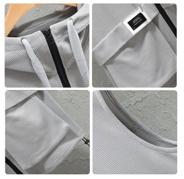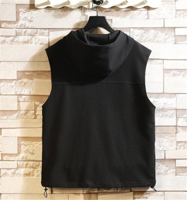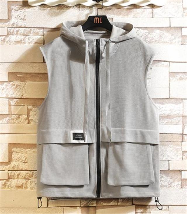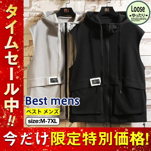 ベスト メンズ フード付き ノースリーブ ワッフル生地 ジャケット パーカー ジップアップ カジュアル ゆったり 大きいサイズ 無