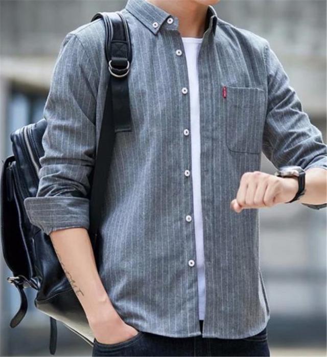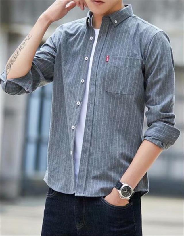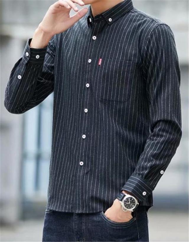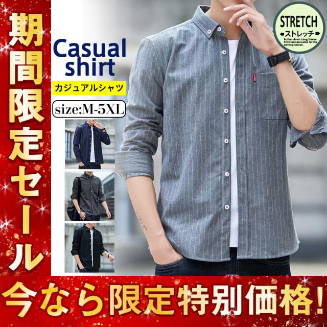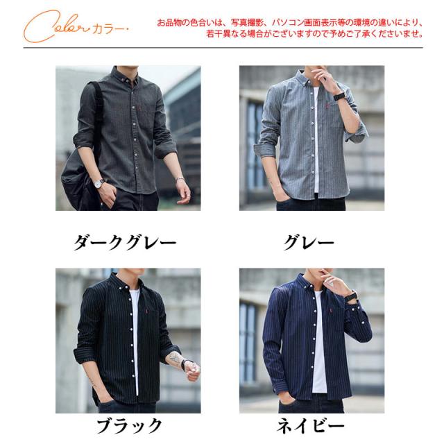 カジュアルシャツ メンズ シャツ 長袖 ストライプ柄 ボタンダウンシャツ トップス 長袖シャツ ワークシャツ 春秋 通勤 開襟シャ