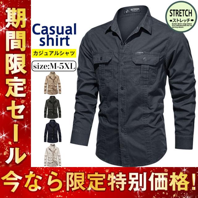 ミリタリーシャツ メンズ 長袖シャツ カジュアルシャツ ワークシャツ 開襟シャツ アウター アメリカ アウトドア 春服 秋服 登山