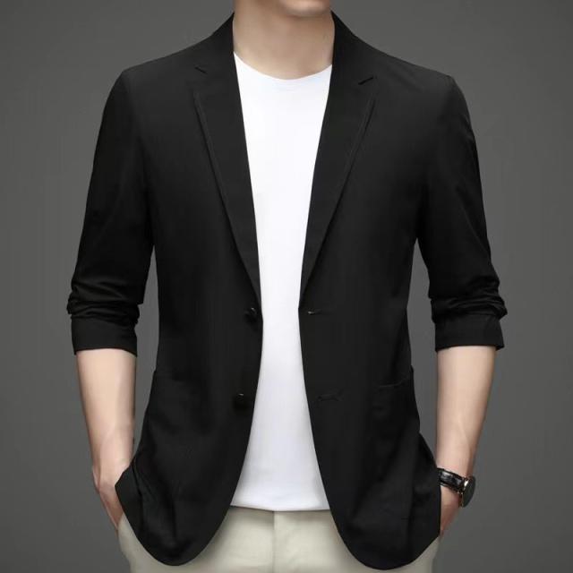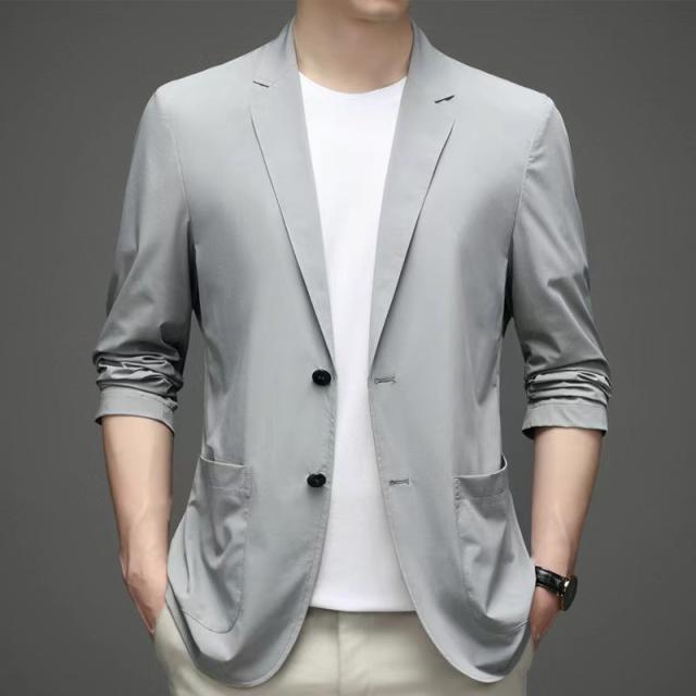 通気性が良い上質な生地で作ったメンズ テーラードジャケットです。