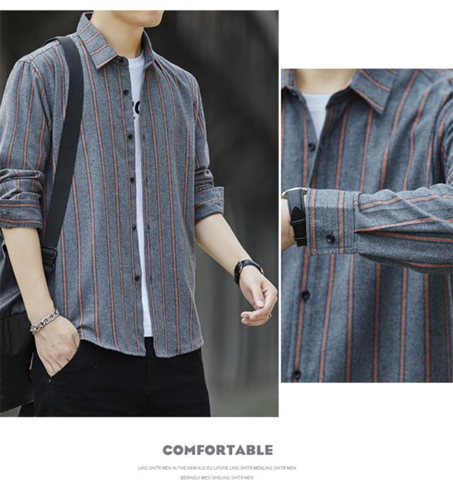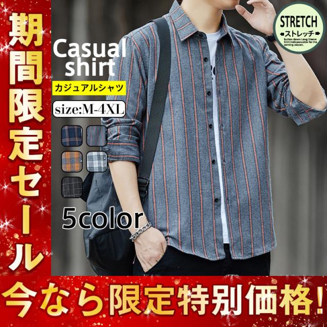 セール ストライプシャツ メンズ シャツ カジュアルシャツ 長袖シャツ メンズシャツ 大きいサイズ アウター 秋シャツ ワークシャ