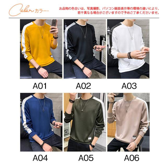 トレーナー メンズ 袖ライン 長袖Tシャツ 裏起毛 プルオーバー クルーネック スウェット ゆったり 大きいサイズ 部屋着 着痩せ