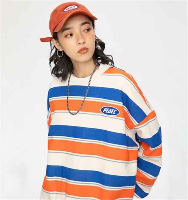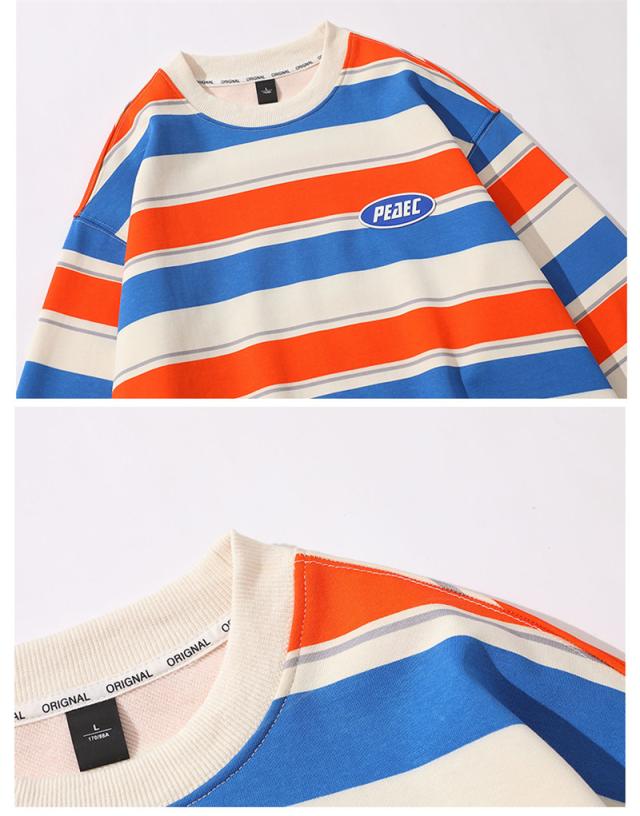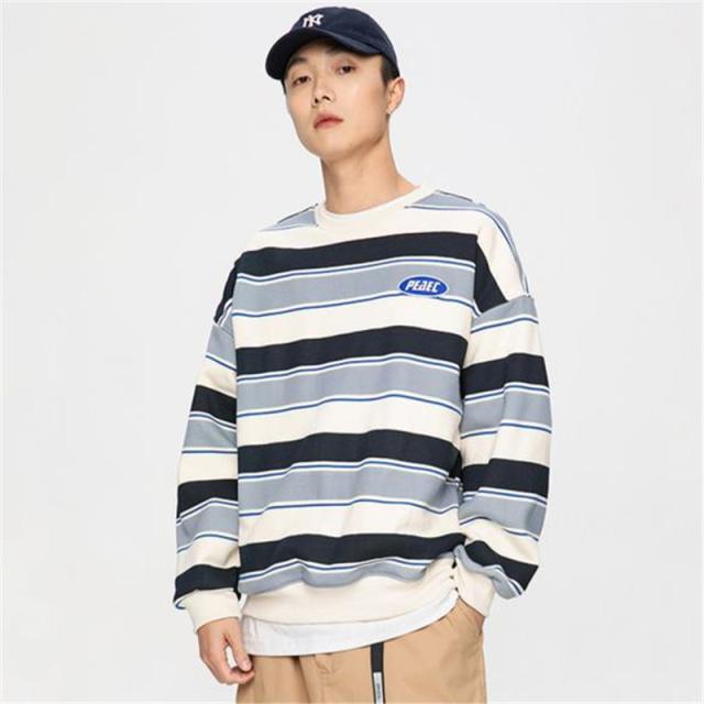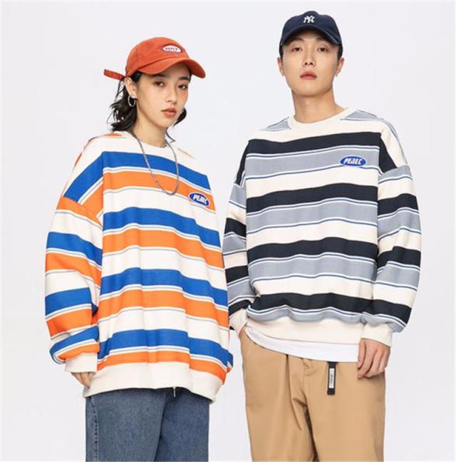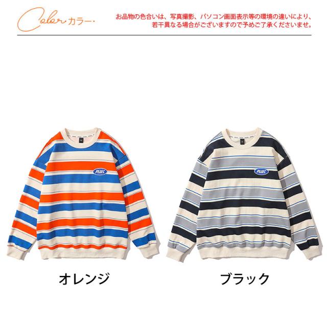 トレーナー メンズ プルオーバー クルーネック スウェット 長袖 レディース ストライプ ゆったり アウター 上着 カジュアル ス