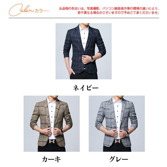 テーラードジャケット メンズ スーツジャケット ビジネス カジュアル チェック柄 紳士服 フォーマル 長袖 スリム ワンボタン 着