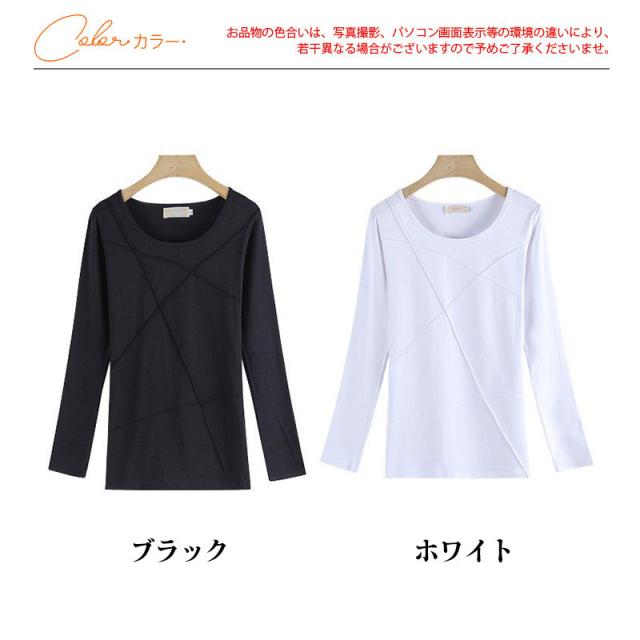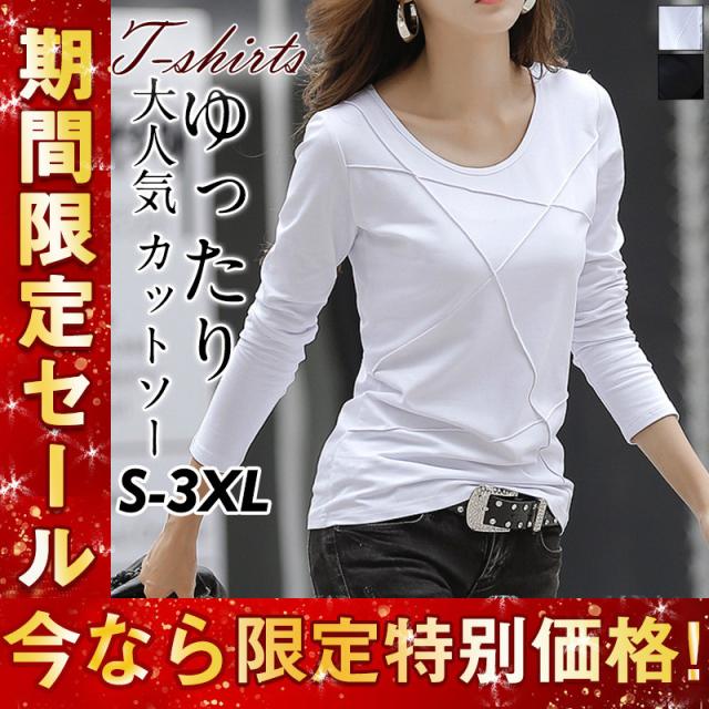 人気 カットソー レディース 長袖 Tシャツ 無地 トップス シンプル 丸首 おしゃれ ブラック ホワイト ゆったり シンプル 無