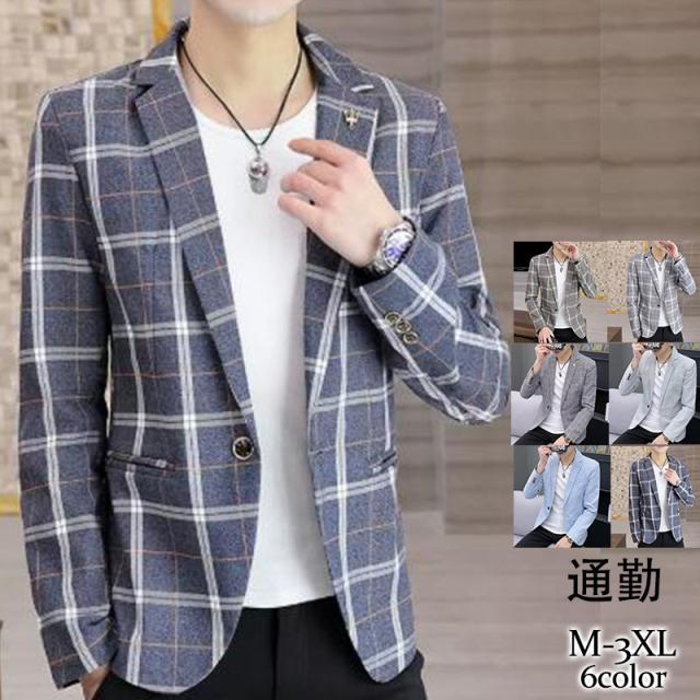 テーラードジャケット メンズ ブレザー ビジネススーツ チェック柄 ジャケット アウター カジュアル 着痩せ 通勤 スリム 春秋