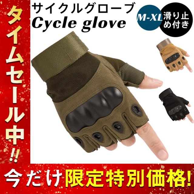 手袋 サイクリンググローブ 保護グローブ ミリタリー 軍事風 指切り 滑り止め付き バイク用 サイクルグローブ アウトドア 無地
