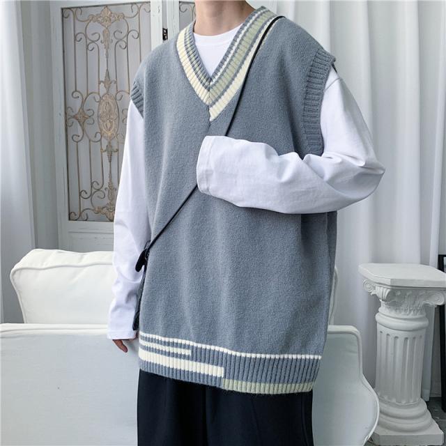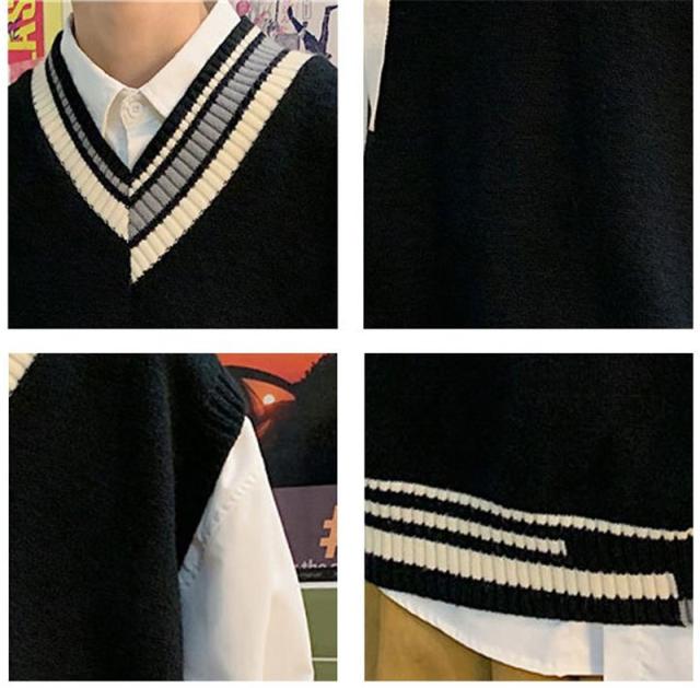ニットベスト メンズ Vネック プルオーバー スクールベスト セーター ビジネス ゆったり 制服 シンプル 無地 通学 原宿風 オ