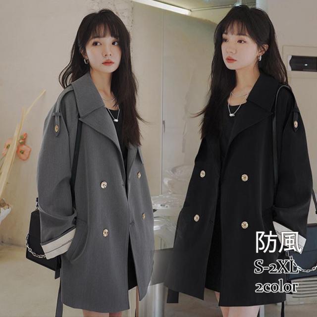 新作 トレンチコート レディース スプリングコート ミディアム丈 アウター ライナー付き 羽織 ゆったり 防風 韓国風 通勤 春秋