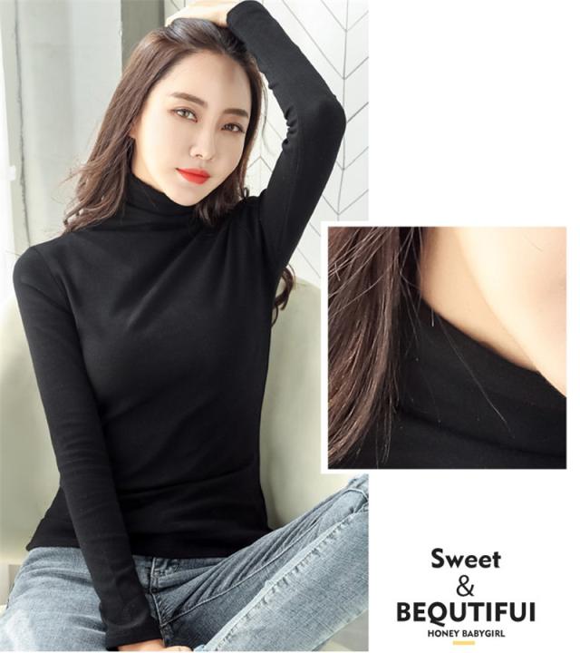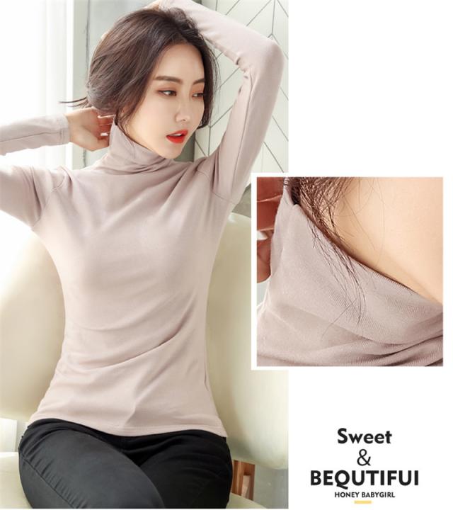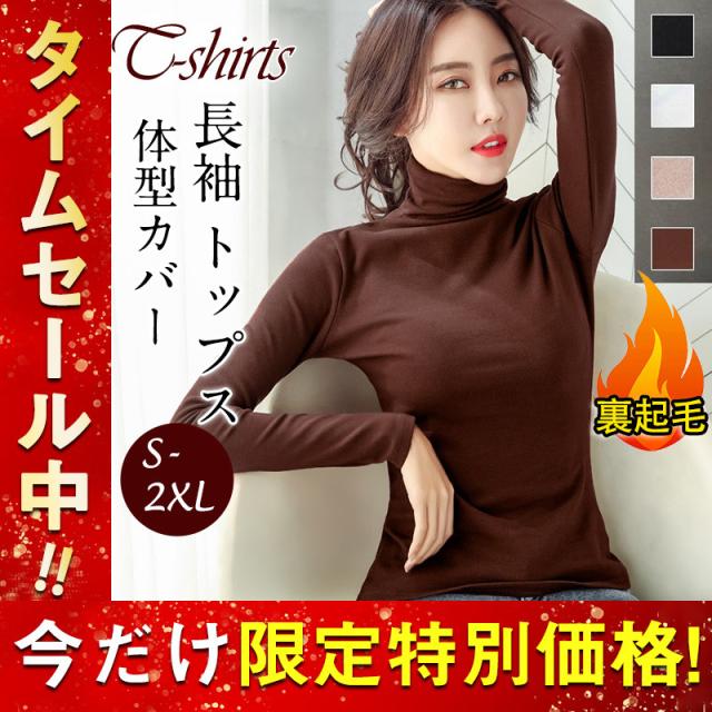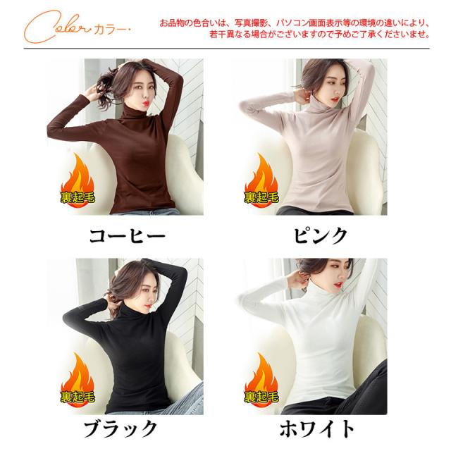 Tシャツ レディース 長袖 カットソー ハイネック 無地 裏起毛 インナー 着痩せ 部屋着 体型カバー ブラウス ゆったり 細身