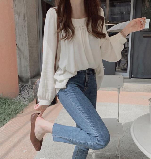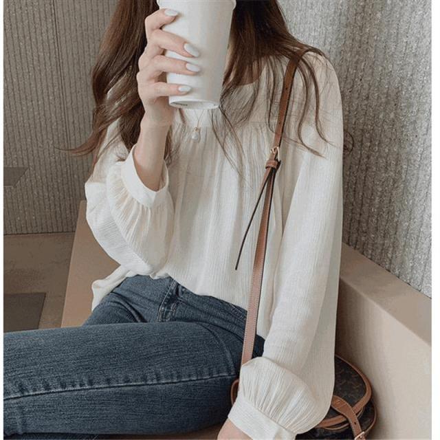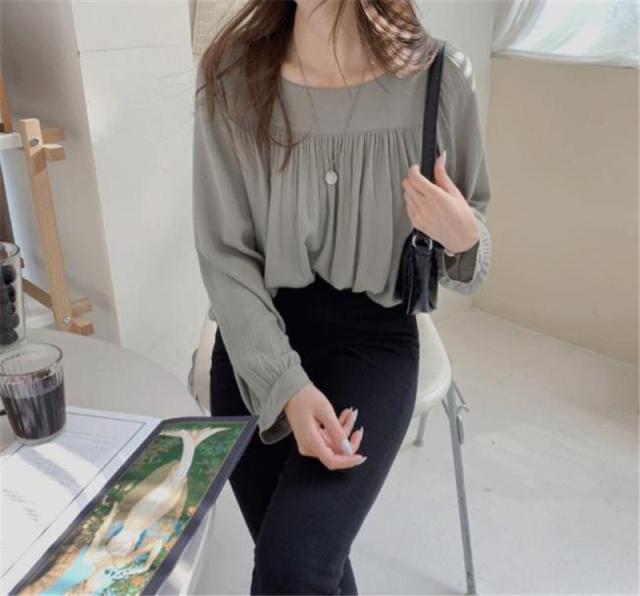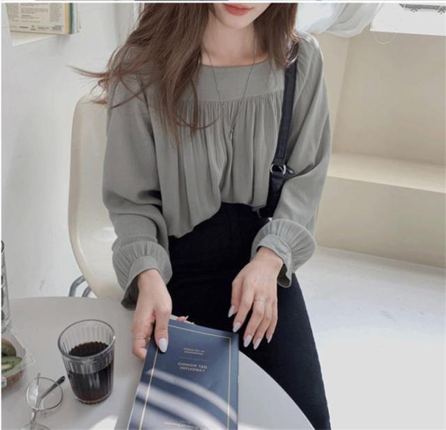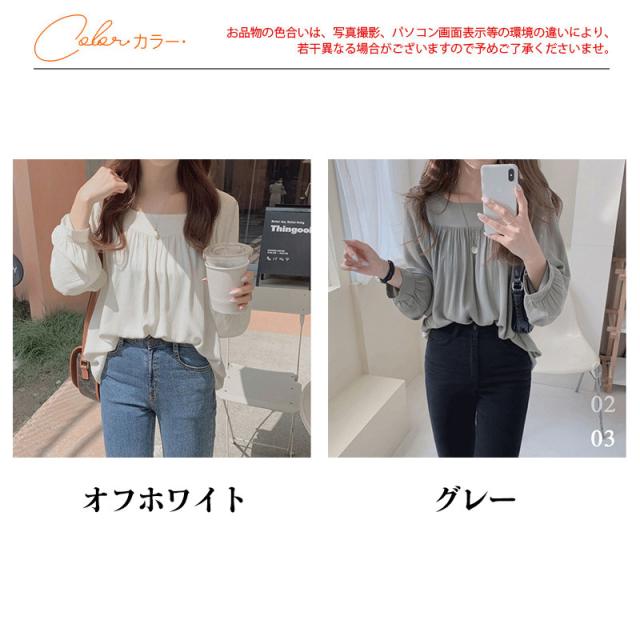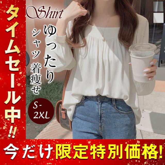 新作 ブラウス シャツ レディース 長袖 プルオーバー スクエアネック 着痩せ ゆったり トップス シワ加工 フランス風 春 秋