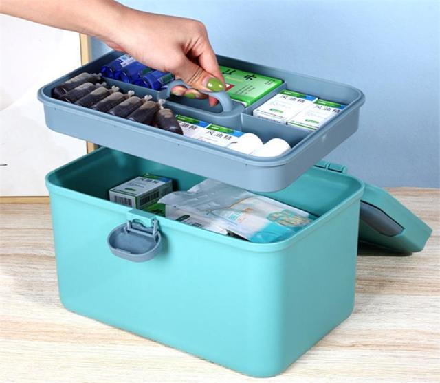 救急箱 薬箱 メディスンボックス 大容量 多機能 薬収納 薬ボックス 取っ手付き 無地 シンプル カラー配色 薬ボックス 応急処置