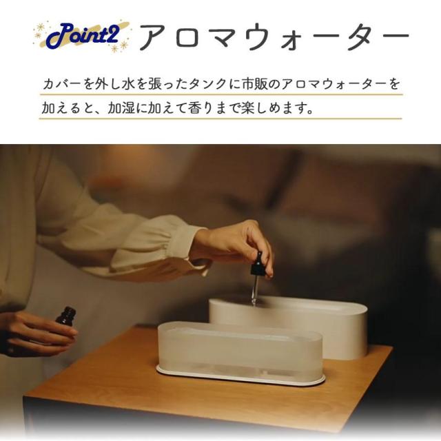 カバーを外し水を張ったタンクに市販のアロマウォーターを加えると、加湿に加えて香りまで楽しめます。