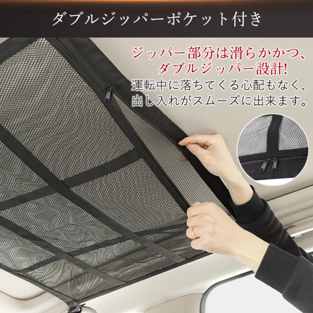 即納 車 天井 収納 ネット 車用 ルーフネット メッシュ ファスナー ハンモック 車載ネット 大容量 荷物 入れ 吊り下げ アウトドア