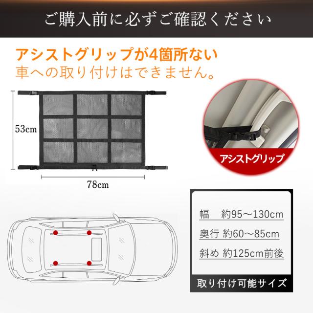 ●お車のアシストグリップ等ベルト設置個所が4ケ所あることを必ずご確認の上ご購入ください。