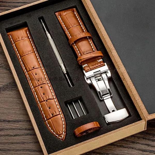 レザーウォッチストラップ,スペアユニバーサルメタル,バタフライクラスプ付き,12mm, 14mm, 16mm, 18mm, 19mm, 20mm, 21mm, 22mm, 24mm