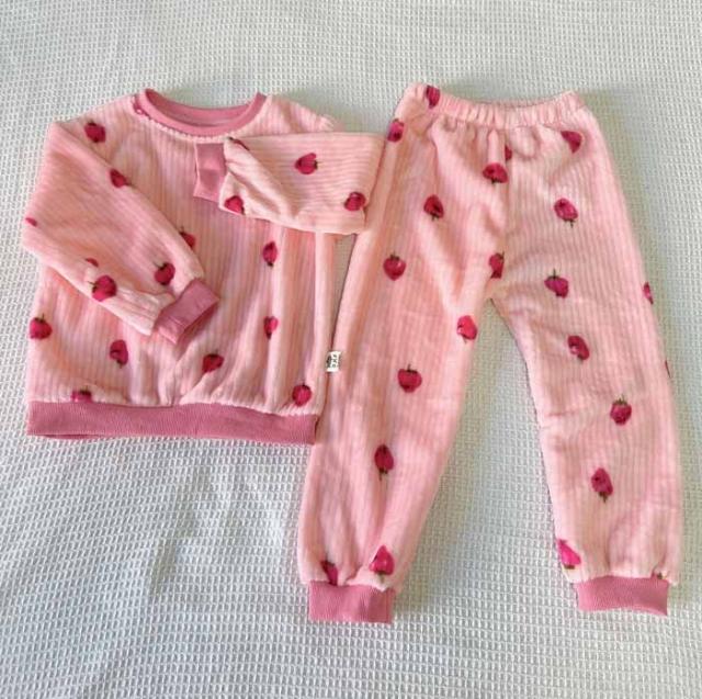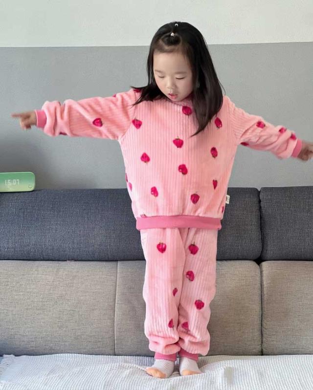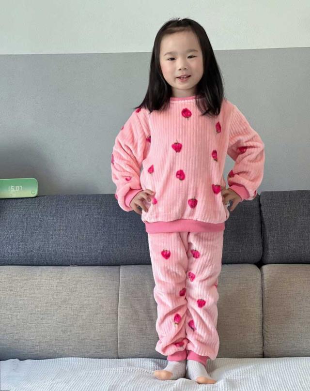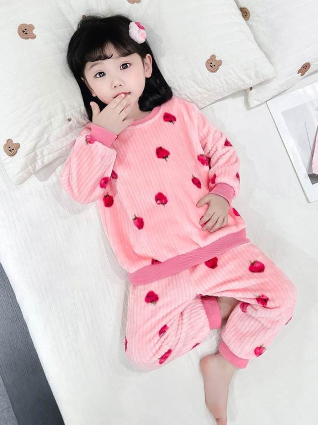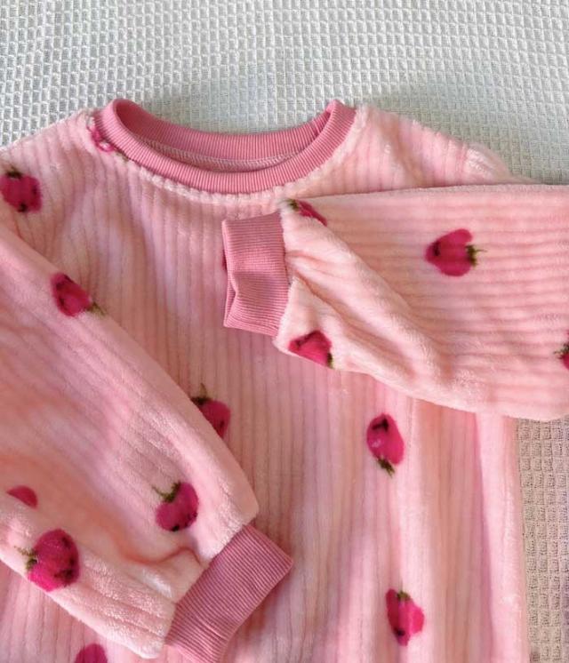 キッズパジャマ もこもこ ルームウェア 上下セット イチゴ柄 キッズ ナイトウェア 子供 女の子 冬 かわいい おしゃれ ジュニア 長袖 子ども ふわふわ 裏起毛 可愛い 誕生日 プレゼント 暖かい トップス ズボン フランネル 優しい肌触り厚手 秋冬 dh030m3m3m5
