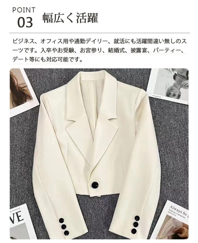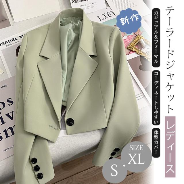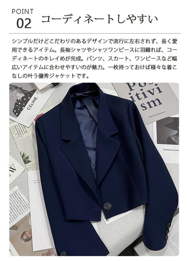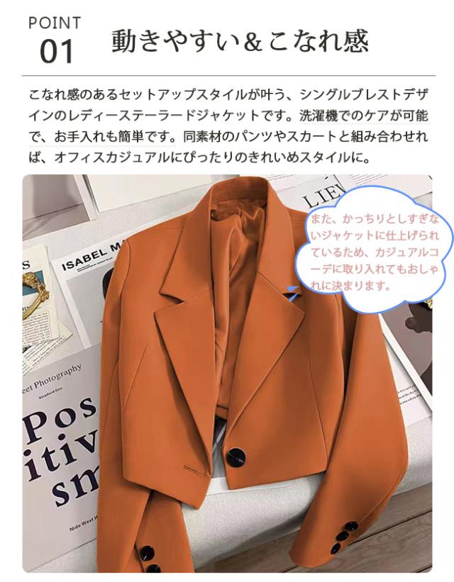 春新作 テーラードジャケット レディース スーツ ショート丈 ジャケット 長袖アウター 春 秋 大人 フォーマル 無地 アウター 通勤 OL オフィス かジュアル きれいめ ナチュラル