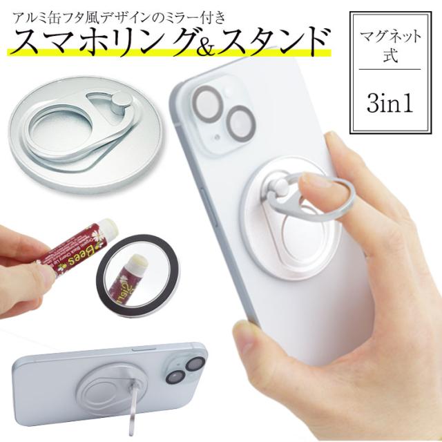 スマホリング MagSafe 鏡 ミラー付き アルミ缶 プルタブ 缶 鏡面 スタンド ステイオンタブ ミラー リング 金属プレート マグネット マグセーフ iPhone16 15 14 落下防止