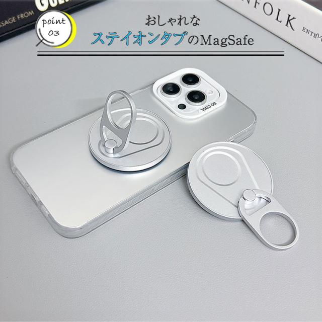MagSafe対応のスマートフォンやケースに貼り付けてご使用いただけます。