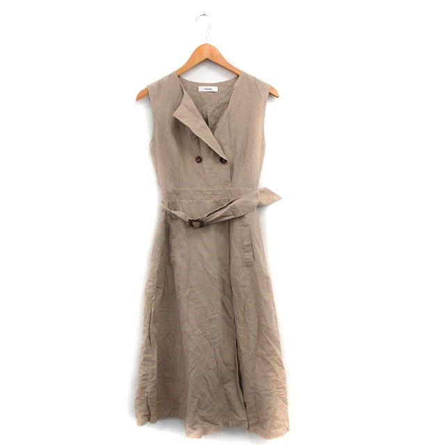 【中古】アンデミュウ Andemiu ワンピース ノースリーブ ロング ベルト リネン シンプル F ベージュ /KT8 レディース