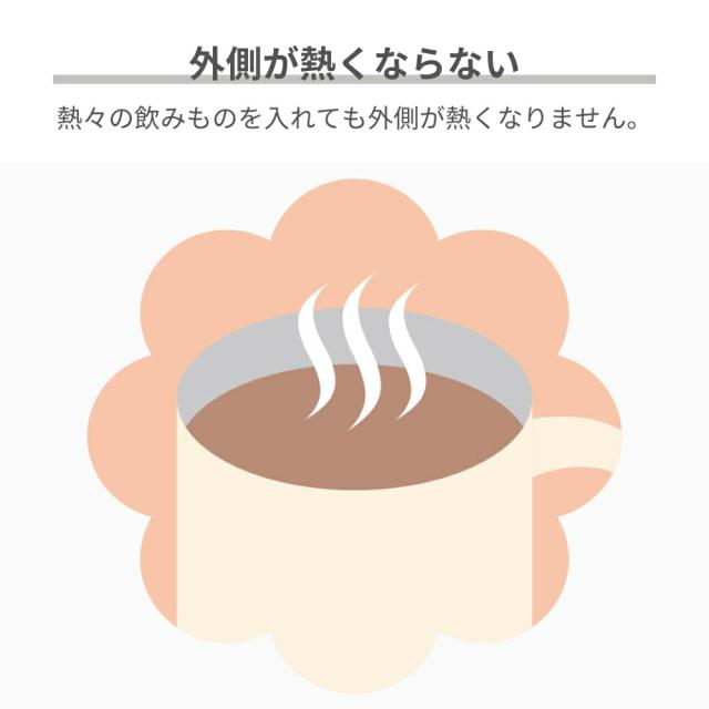 熱々の飲みものを入れても外側が熱くなりません。