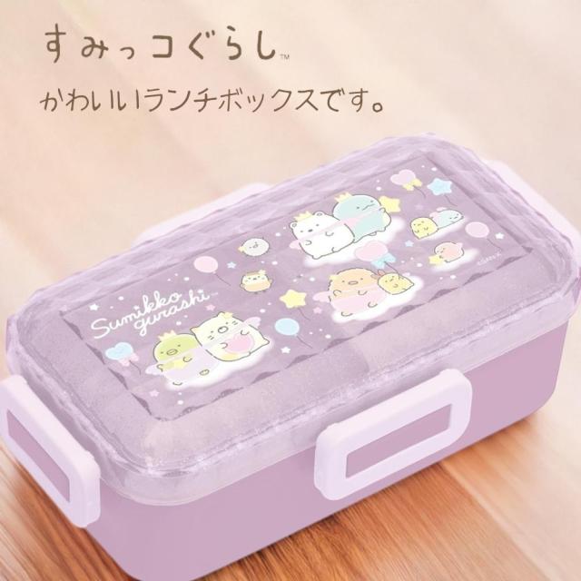 すみっコぐらしのかわいいキャラクターが描かれた、4点ロックふわっとランチボックスです。