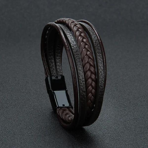 男性用の手作り編組レザーロープブレスレット,合金磁気クラスプ,人気のジュエリー,オリジナルトレイ