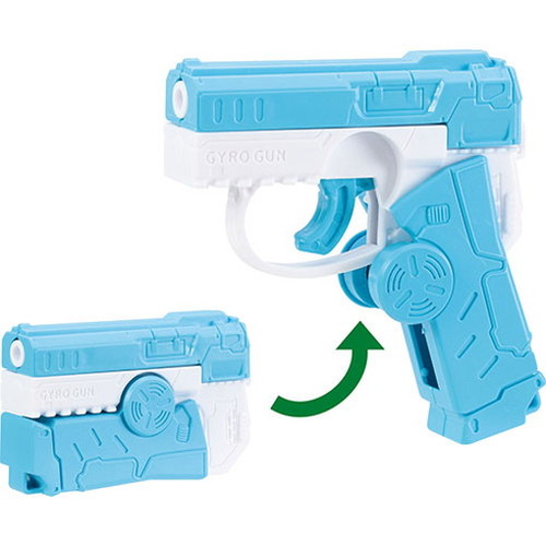 引き金を引かなくても、連続で撃てる銃のおもちゃです。折り畳めばハンドスピナーにもなります。
