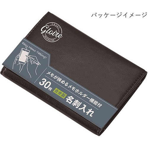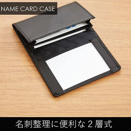 とっさのメモに活躍する便利なメモホルダー付きです。合皮製名刺整理に便利な2層式。