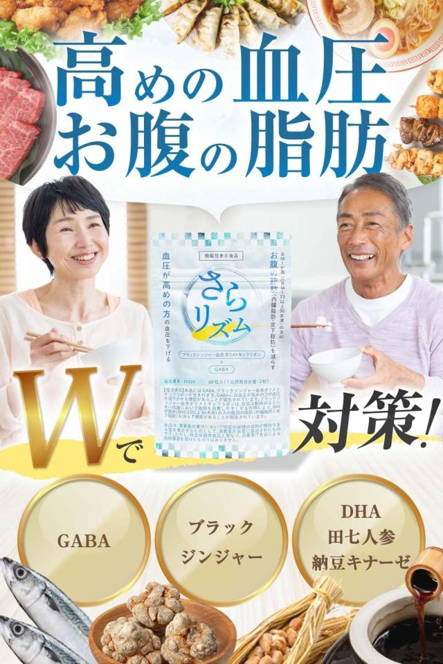 血圧を下げる サプリメント 血圧 下げる 高血圧 サプリ 内臓脂肪 皮下脂肪 下げる お腹の脂肪 サプリメント BMI サプリ メタボ 下げる 血圧 対策 GABA ギャバ ブラックジンジャー DHA 黒酢 ナットウキナーゼ 田七人参 さらリズム